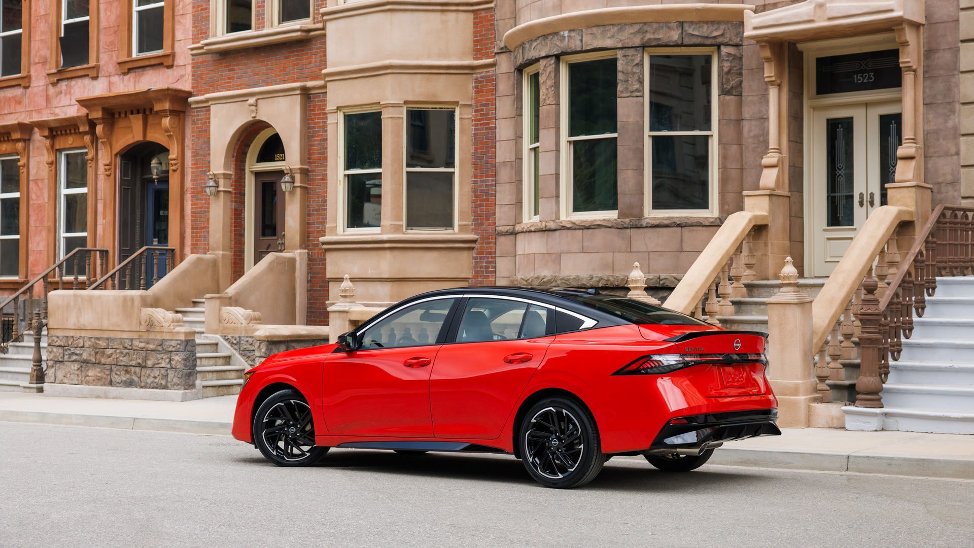 Le profil latéral révèle une ligne de toit rappelant un fastback, rehaussée par une finition satinée arquée qui confère à la Sentra une allure plus raffinée. Les surfaces de caractère acérées mais fluides guident le regard vers le bas, soulignant la stabilité et la posture confiante de la berline. À l'arrière, des feux arrière à DEL et des ailes musclées complètent un design qui attire l'attention sans excès.